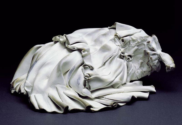 Fig. 15. Ceramic statue of Maria Geszler: Falling figure. Maria Geszler's ceramic exhibition and the scientific meeting on neurorehabilitation opened at the same day. Szombathely is located on the western border of Hungary, near Vienna, but far from the Universities of Budapest and Pécs. It became clear, that our county and the three neighboring counties need to work together. Nearly one and a half million people live in this area. This way, we established the West Pannon Neurological Forum with its first meeting in 1998 in Szombathely (22), for neurologists, neurosurgeons, and neurorehabilitation physicians. Neuropathology was represented consequently by our department. This one-day meeting is held every six months in one of the cities of the four counties. The gatherings are mainly based on case studies with an educational lecture. The event created dialogues among the doctors of these four counties and helps them to solve medical problems. The 50th anniversary meeting will take place next year.