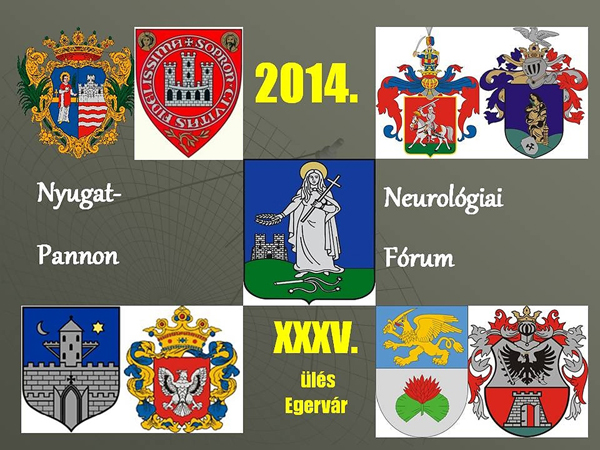 Fig. 16. One of the West Pannon Neurological Forum's program booklets with crests of the host cities I retired in 2002 and started to work full-time at the Department of Pathology. I took the Neurohistology Laboratory with me: the lab had a better, more spacious place here. Sections were always performed in the presence of clinicians and then the evidence was always compared with the results of radiological examinations in the presence of radiologists. We also collaborated with the Laboratory of Molecular Pathology, and several published works resulted from this cooperation (23-27).