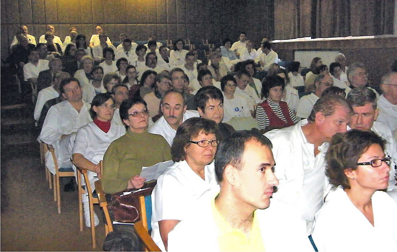 Fig. 7. Black Water, Swirling Time – The Message of Autopsy Reports (1920-1956) During this period a lot of radical changes occurred. Interestingly, sifting through the autopsy reports revealed that in the pre-war years every third death protocol was reported on tuberculosis. After the war the rate of infant mortality outstripped these deaths. The reports also included cases of diseases which have since been eradicated such as syphilis, tetanus, scarlet fever, whooping cough, diphtheria or poliomyelitis. They recount the typhus epidemic in the department of psychiatry and the epidemic of hepatitis in a child asylum. Heart attacks or lymphoma barely occurred. Curiously, patients under the age of 60 died three times as often in the hospital than those over the age of 60. In the meantime, political conditions changed drastically. To illustrate this in my book I have attached excerpts from the local newspaper Vasvármegye. In 1940 for example, the chief physician of pathology, Dénes Görög, could have read news predicting a glorious future: The desertion of England has begun. The English population is in distress about a possible German landing… Life in London is paralysed. The prices for a seat on one of the big ocean liners are horrendous... England will either surrender or be destroyed. After the war in 1948 chief physician Romhányi might have been reading the local newspaper and be persuaded that the Communist Party had taken over the role of God in Hungary: Thank you for my recovery. I am a country woman with five acres. Due to my lung problems I was lying in the pulmonology of the public hospital in Szombathely. I was operated twice. I owe my recovery to the Party and the doctors of the hospital. The events of the time shaped the human destinies severely. Dénes Görög was taken to Auschwitz with his family in 1944. Under Mengele's supervision he performed autopsies with another Hungarian doctor, Miklós Nyiszli. Shortly before his death he said: Miklós, with your willpower I am confident that you will make it home. I feel that I won´t survive. My wife and daughter died here in the gas chamber, I have proof that it happened. I hid a little boy with the monks of the monastery in Kőszeg. This is my little son Sándor, 12 years old. Take him with you when you get home. I know for sure that I will die. This is my last wish. This wish was fulfilled and the little boy survived, became a chemist, a pharmaceutical researcher and a member of the Hungarian Academy of Sciences. After his years in Szombathely in 1951 György Romhányi was appointed the head of the Pathological Institute of the University Pécs. His experiences at the hospital in Szombathely might have led him to formulate the sentence: The dead teach us. He may have also thought of the fate of Dénes Görög. Neuropathology laboratory – without a boss During the two years I spent in pathology I performed the autopsy of those who died in the care of the Department of Psychiatry and Neurology. I also studied the histological specimens and learned about their diseases. In 1963 this department was divided into two departments, one of them was headed by a new physician Dr. László Baltavári, from the Környey-Clinic in Pécs. His wife worked in the laboratory of that Clinic. The new chief physician managed to set up a neuropathology laboratory in the department within a year. At that time there was a vacant medical position in the department, which meant that I was now able to have a transition. Since I already had a pathological past, so in addition to my daily medical work on patients, I also received the neuropathology laboratory as a gift. Without a boss. I had to stand on my own two feet. I was already able to do the sections of the brains here and through it we were able to evaluate our medical work. I am still doing this work, although the laboratory (with me) has been relocated to the Pathology Department nearly twenty years ago. The number of brain cuts performed here is close to 6000.