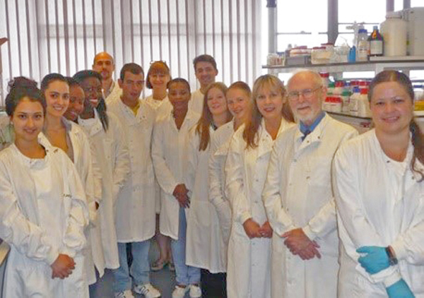Figure 6. Roxana Carare and her group. Students and technical staff with Cheryl Hawkes (right front) next to Roy Weller and Roxana Carare. Why do research? For me, the main reasons for engaging in research are to satisfy my curiosity and to take the opportunity to present unique data to colleagues at Scientific Conferences and in Scientific Journals. I had been exposed to research during my BSc course at Medical School and in my early postgraduate years working with John Cavanagh and Colin Adams. Bob Terry encouraged research in all his fellows and led by example. By the time I arrived in Southampton, research was well ingrained within me. Southampton has been, for me, an ideal environment for research through excellent facilities and multiple disciplines within the University available for consultation and collaboration. With a heavy diagnostic workload in biopsies and post-mortem brains, I was exposed to many unsolved problems in Human Neurobiology and Neuropathology that provided a stimulus for hypothesis-driven experimental research. Another important stimulus for research was the requirement that each Medical Student in Southampton perform a research project from October to May in the fourth year of the course. This meant that a constant stream of two or three highly intelligent, hard-working enthusiastic 22 year old students worked in Neuropathology each year with their individual projects but collaborating closely with BSc and PhD students, Post-Docs and Research Fellows. My strategy was to begin a research theme with straight-forward observational projects for the Medical Students that generated hypotheses to drive experimental research for the PhD students and Postdoctoral Fellows. Many students presented papers at British Neuropathological Society (BNS) Meetings and published papers in peer-reviewed scientific journals. All groups benefitted their future careers by acquiring skills in spoken and written communication. How did I benefit from students and others involved in research projects? The students educated me by their observations, the papers that they read and from the knowledge that they had gained in their recent medical education. Retaining an open mind was very important: each student was given a problem to solve but advised not to read the previous literature until they had results and could form their own opinions. There were numerous occasions upon which students burst into my office crying “The literature is wrong!” In this way they built up a healthy scepticism for previous findings. I advised students not to believe anything they read and not to believe anything that I told them until they had verified it for themselves. Structure of the human leptomeninges and their relationship to the brain and blood vessels Although my interest in fluid balance in the brain started with my work on Hydrocephalus in New York, it was reawakened in Southampton by student projects using Scanning Electron Microscopy (SEM) to examine human leptomeninges. Margaret Upton 11 identified the intricate pattern of channels by which CSF passes through arachnoid granulations to the blood in venous sinuses. Margaret Hutchings made a startling discovery in 1986 using SEM on the surface of human brain by showing that the pia mater is reflected from the surface of the brain on to arteries and veins in the subarachnoid space thus separating CSF in the subarachnoid space from the brain 10 (Figure 7). This exploded the longstanding concept that there was a direct communication between CSF and brain. Margaret also showed that erythrocytes in Subarachnoid Haemorrhage do not penetrate the pia mater to enter the brain. We later confirmed that solutes and macrophages do pass through the pia mater that forms a continuous sheet on the surface of well-fixed normal brain as shown by Ruth Alcalado 12. No pores in the pia have been identified by TEM and the holes seen in SEM images are probably post mortem or fixation artefact.