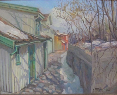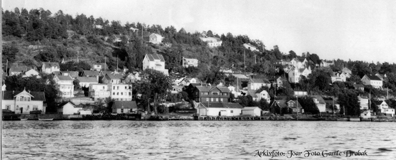 I: The start 1 Drøbak I was born in Drøbak (Norway) in 1942. Drøbak is a village-like small town at the eastern shoreline of the Oslofjord (the photo at the top, from the 1960s, shows our dark house dead centre). I grew up here, where everyone ‘knew’ each other. My neighbourhood is depicted in the oil painting from the spring of 1945 (the artist, Anton Thoresen, lived in the red house). In these safe surroundings, we played cowboys and Indians and hide and seek.