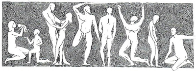 I kept the same room (#19) in the new dormitory ‘Landgraf Ludwig Haus’ from autumn 1961 until I left for Norway in August 1967. The drawing (45x15cm) by my little brother Erling hung above my bed; it has been with me ever since. It depicts the cycle of life and I have been through six of the depicted stages. The right figure fits me best now.