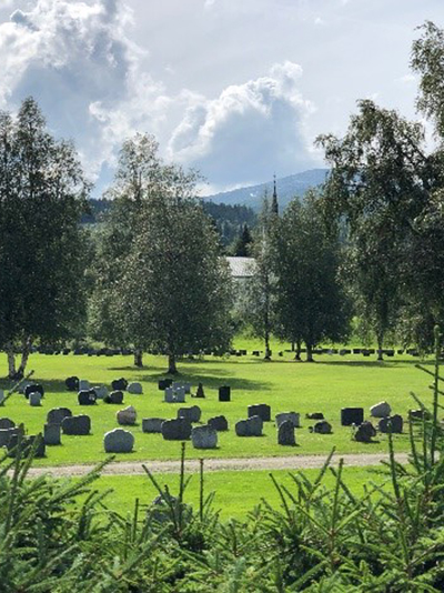 6 Ørland Air Base Students of medicine, theology, and dentistry could absolve part of the 15 months of mandatory military service during their studies. I finished my recruit training (‘Boot Camp’) in between semesters. In the summer of 1969, I did a six-week Officers Course followed by one year as a flight surgeon in a care-of-the-flyer program at Ørland Air Base west of Trondheim. To fill this assignment, it was important to get an impression, a real feeling, of how it is to be a fighter pilot. Some of the enlisted doctors in the air force did get one single flight with a fighter jet. Airtime for the Northrop F-5 Freedom Fighter was precious. All non-fighter pilots within the air base would give ‘anything’ to be taking off in a fighter jet. I was lucky to be granted this experience five times for a total of 6 hours and 25 minutes. I flew tactical missions, night flight, interceptions, and granted control of the jet for some minutes, pretending that the top of the clouds was solid ground! Exciting and unforgettable! I met my wife Kari during this period and made many life-long friendships. 7 Meråker After I completed my obligatory military service, I had not yet decided what kind of a physician I wanted to be. A friend in the military persuaded me to spend the next year in rural Meråker (approx. 3,000 inhabitants). The single country doctor was leaving to specialise in psychiatry and had no successor. Following my friend’s call, I filled the vacancy for 12 months (1970-1971). It was quite a challenge for a green and inexperienced 28-year-old physician. I still remember my existential thoughts passing the local church that had a huge and grassy graveyard with only a few stones in a corner… Now (photo as of July 2021) the trees have multiplied and grown; still there is abundant free space.