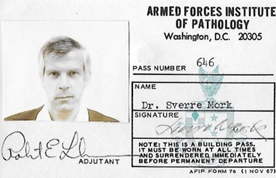 I got permission to visit the Departments of Neuropathology and Ophthalmic pathology. After a quick photo session I had an ID card, and then the huge concrete building (‘atom bomb secure’, they said) was free to me. My plan for the first week was to see as much eye tumours as possible in the unit of ophthalmic pathology, headed by Lorenz E Zimmerman. On Monday morning, ‘Second in Command’, Ramon L Font welcomed us (around 10 US and international eye aficionados) with actual, current cases of diseases of the eye and orbit. He really grilled us for diagnostic suggestions. Originally from Cuba, he spoke with an accent. I recall him correcting the eye doctor (from Mexico) in front of me, who had answered ‘leukeMIA’; Ramon Font with a prompt correction: ‘leuKEmia, leuKEmia’. The doctor in front of me uttered in his cupped hand, ‘At least I speak two languages’. Zimmerman had finished editing the Blue Book on Eye and Orbital Tumors. The manuscript was being printed. He was so kind to give me access to the background material, most importantly, a box with glass slides. The content was identical to the material sent to leading ophthalmic pathologists worldwide. The rest of the week I was completely occupied by ‘reading’ the different lesions through the microscope. With the box came the diagnoses offered by every one of the cooperating international ophthalmic pathologists (more than 10 of them). I kept my eyes (see ‘An open mind’ above) away from the judgment of the international expertise. I worked the microscope in a relaxed mood (‘no rush’) and wrote down my assessment of every case. Only then would I check the diagnoses of the specialists from the international editorial board. The head of Department of Ophthalmology in Bergen, Professor Torstein Berthelsen (1923-2008) did contribute financially to my study tour to the AFIP. The week ended with a feeling of having the stamina to adequately serve the eye doctors of Western Norway. The last two weeks of My Way of the AFIP experience turned out to be great as well. I was the only ‘free player’ there. I was fortunate to have the personal attention of the neuropathology staff, especially Gary Clark and James Henry, who helped in picking interesting cases to study during my stay. Vernon Armbrustmacher supplied me with muscle biopsies. I recall memorable lunches with Kenneth Earle (Chief of Neuropathology) and Leslie H Sobin (editor of innumerable books on histological classification of tumours, and poetry (see example in box)).