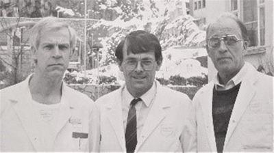 Thus, my friends (Tore and Arne, see the next photo) had it easy, cuddled with biopsies, while I, lifting the burdens of autopsies off their shoulders, strived to ‘see’ and to ‘read’ what microscopy offered me. I longed for the real thing - to experience the task of being the doctor’s doctor in real time. That is what surgical pathology is about. In Goethe’s words: ‘Vor die Therapie haben die Götter die Diagnose gestellt’. But I was doing the essential work of diagnostic pathology: Establishing borders between normal appearances, physiological changes within the boundaries of normality, and initial changes signalling disease within tissues.
