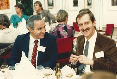 Sam Ludwin (Kingston) and Hans Lassmann (Vienna) enjoy luncheon at Hotel Norge, Bergen (First NLNS, May 1987). There have been numerous NLNS since then. To mention a few: The one in 1995 (the VIth NLNS on Inflammatory Muscle Disorders) was an adventurous and highly praised event. The location was Svalbard/Spitsbergen and Kari Skullerud (neuropathologist, Oslo) had the idea and organised the symposium.