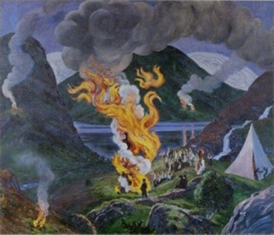 Numerous attendants attested to the quality of all aspects of this very first NLNS gathering with a focus on Myelin and Demyelination. See reactions tagged for the facsimile. Harald Nyland and I organised another symposium on Multiple Sclerosis in 1996. We used a painting by the artist Nicolai Astrup (1880-1928) as an eye catcher. In English the title of the oil painting is ‘Midsummer Eve Bonfire’. For us it symbolises the various aspects of demyelinating lesions. Multifocal fires of different age and intensity, some burned out, others with flames high! By the way, Nicolai Astrup was introduced for the first time in the USA just this August 2021. The venue: The Clark Art Institute, Williamstown, MA. The Boston Globe writes: ‘the best artist you’ve never heard of’ and adds: ‘The Wall Street Journal and the New Yorker, no less, are cheerleaders’.