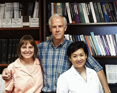Many hours were spent on the confocal microscope looking for clues. The attraction of the ‘collapsed’ stacks of the laser-scanned immune-stained 30μm thick sections from the frozen specimen of brain tissue was evident in images. The image is stained for myelin and microglia. It was a good feeling to know that you had removed the CNS at post-mortem, fixated, selected areas to study, cut, and stored tissue wet or in paraffin blocks. I brought some of the tissue to the US in my hand luggage. The co-operation between Cleveland and Bergen resulted in many publications (the first results were published in 1994, and the last paper last year in 2020. One, in the New England Journal of Medicine had a special impact since our findings initiated an Editorial (‘Demyelinating Diseases ― New Pathological Insights, New Therapeutic Targets’) in the same journal. Our results were presented on national TV and, in February of 1998, reached the front page of the New York Times. In other words, the old knowledge that MS lesions affect grey matter of the brain as well as white matter came in ‘new wrappings’ and got some great attention. I had long since noticed that the characteristic lesions in MS brains did not spare the grey matter. So I got the idea to sample grey and white matter from preselected areas disregarding macroscopic changes/lesions. We wanted to see what the eyes did not see; therefore, we searched for a new way to examine MS brains. We did not sample macroscopic lesion. Rather we stuck to sampling brain material strictly from preselected areas. We weren’t looking for macroscopically evident MS lesion; instead, we took tissue probes from predetermined areas. (I was experienced in cutting formalin fixed brain in the frontal plane coronal sectioning). A section through the anterior commissure turned out to be a fine landmark for getting similar brain areas from different individuals with MS. From this section we sampled the superior temporal, the cingular gyrus, and parietal tissue. We revealed the extent and pattern of demyelination in the cerebral cortices and underlying white matter of 20 MS brains. Tissue from the same preselected brain areas from people without neurological disease served as controls. Our findings were published in the JNEN in 2003 and undermined the amount and importance of grey matter (cortical) changes in the brains of MS patients. Lars Bö defended his PhD dissertation ‘Multiple sclerosis: Immunopathological studies of inflammatory central nervous system demyelination’ at the University of Bergen, in 1998. The five peer-reviewed articles of his dissertation have, as of May 2021, been cited 5,639 times. Space was precious in the energetic and crowded neuroscience floor. So, when the newly ‘added’ neuropathologist/researcher Susan Staugaitis arrived in Cleveland, I had to ‘give up’ my office to her. She was split between diagnostic service for pathology and research in neuroscience. Susan was intelligent, sharp, and well informed. She was an outspoken and confident contributor in many AANP and other scientific meetings. We had lot of engaging discussions. Susan sadly had a glioblastoma diagnosed in 2014, a fact that she was extraordinarily open about. In 2017, I sent her a Christmas greeting with this photo from the library room.