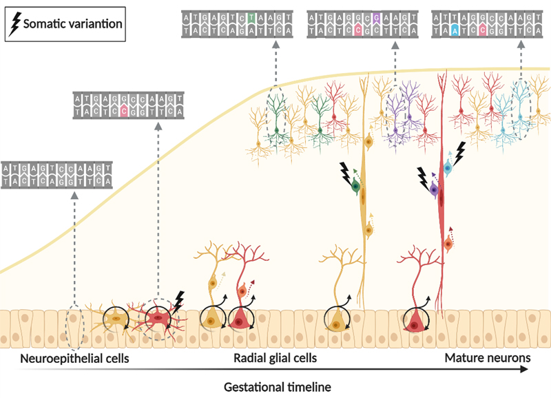 Figure 1: Single-cell genomic applications using single cell combinatorial indexing or droplet based cell isolation with barcoding 8 Single cell combinatorial indexing (SCI) and droplet-based cell isolation are the most popular barcoding strategies used by most high-throughput single cell genomic applications. SCI uniquely tags the nucleic acid molecules in each cell through serial mixing, splitting, and barcoding. The higher the number of barcoding steps, the higher the number of cells that can be uniquely tagged in each experiment. Droplet-based techniques rely on physical isolation of individual cells and engineered barcoded beads in nanoliter droplets, which limits their scalability but they produce less noisy results. With permission from the author 8. Whereas single cell genomics have already been applied using human epilepsy surgery brain samples9, Pfisterer and colleagues described in 2020 for the first time single nucleus transcriptomics in human temporal lobe epilepsy and non-epileptic subjects10. They deciphered dysfunctional neuronal subtypes in the seizure active cortical region and found that the largest transcriptomic changes occurred in distinct subtypes of principal neurons, as classified by the layer-specific marker genes CUX2, RORB, THEMIS, and FEZF2, and GABAergic interneurons, as classified by the marker genes PVALB, SST, VIP, and ID2. As a result, FEZF2 positive neurons of layers 5 and 6 and CUX2 neurons of layers 2 and 3 were more affected than other subtypes of the same families. Similarly, parvalbumin and somatostatin interneurons showed more of an epileptogenic signature than other GABAergic interneurons. Furthermore, the subtypes with the largest epilepsy-related transcriptomic changes belong to same circuits. In addition, glutamate signaling exhibited a strong dysregulation in epilepsy, as indexed by layer-specific transcriptional changes in multiple glutamate receptor genes and upregulation of genes coding for AMPA receptor auxiliary subunits10. Overall, these data confirmed neuron-specific molecular phenotypes in the epileptic neocortex, which may become novel targets for anti-epileptic precision medicine in the near future. Over the past 5 years DNA-methylation has gained significant interest and momentum in neuropathology. The development of DNA-methylation based classifier for epilepsy-associated brain malformations will be discussed further below (see TOPIC 3 for further reading). DNA methylation has not yet been addressed at the single cell level in human neurosurgical specimens though. In the mouse brain, however, a first comprehensive assessment of the epigenomes of mouse brain cell types was published in 202111. The researchers used single-nucleus DNA methylation sequencing from 45 regions of the mouse cortex, hippocampus, striatum, pallidum and olfactory areas and identified 161 cell clusters with distinct spatial locations and projection targets11. Furthermore, they constructed taxonomies of these epigenetic types, annotated with signature genes, regulatory elements and transcription factors. These features revealed the repetitive usage of regulators in excitatory and inhibitory cells to determine cellular subtypes. Furthermore, an artificial neural network model was developed to predict neuron cell-type identity and their spatial brain localization. The creation of a comprehensive DNA methylation-based atlas will establish the epigenetic basis for neuronal diversity and spatial organization throughout the mammalian brain, being also instrumental when developing a human methylome brain atlas in the near future, including epilepsy surgery brain samples from various disorders, e.g. cortical malformations and hippocampal sclerosis. TOPIC 2: Brain somatic mutations in cortical malformations Fifty years ago, in 1971, Taylor and colleagues coined the term Focal Cortical Dysplasia (FCD) for peculiar lesions causing drug resistant epilepsy12, which is now the most common cause for epilepsy surgery in children13. The study of resected human FCD tissue using advanced genomic technologies (Figure 1) has led to remarkable advances in understanding the genetic basis of FCD (Figure 2)14. Mechanistic parallels have emerged between these malformative lesions and low-grade and epilepsy-associated developmental brain tumors (LEAT). Two comprehensive review articles published in 2021 and 2022 recapitulated the avenue from recognition of somatic variants in genes related to cell growth, i.e. the mTOR pathway in FCD Type 2, which were acquired in neuronal progenitors during neurodevelopment14,15. The timing of the genetic event and the specific gene involved during neurodevelopment is likely to drive the nature and size of the lesion, and is maybe also related to the lobar localization. The proposed two-hit mechanism in patients presenting primarily with germline mutations, however, e.g., DEPDC5, has been scientifically approved but remains often difficult to detect with standard technologies. Along these lines, Lee and coworkers newly reported pathogenic brain-specific somatic Ras homolog enriched in brain (RHEB) variants in three patients with cortical malformations16. Interestingly, the somatic variant load directly correlated with the size of the malformation and upregulated mTOR activity was confirmed in dysplastic tissues. Laser capture microdissection showed enrichment of RHEB variants in dysmorphic neurons and balloon cells, i.e. FCD Type 2B. These findings added RHEB as an additional mTOR pathway gene to the diagnostically relevant gene panel for MCD. That the extent of dysplastic brain directly correlated with the somatic variant load suggested that cortical malformations with cytopathological features, i.e. FCD Type 2, represent a disease continuum from a regionally localized dysplasia to lobar or full blown hemimegalencephaly.
