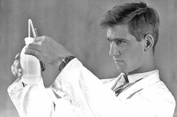 Figure 2: Konrad Sandhoff 1962, during the time of his thesis (Photo shared by K Sandhoff). This study was his debut publication. Having finished studying chemistry in 1962, he turned towards lipid compound analysis from nervous tissue by joining the department of neurochemistry headed by Horst Jatzkewitz at Munich Max-Planck Institute for Psychiatry, encouraged and supported by 1964 Nobel laureate Prof. Fedor Lynen. After failed attempts to isolate presumed sialic-acid-free gangliosides (“asialo-gangliosides”) from cattle brain, his attention turned towards new targets for investigation: rather by chance, in 1962 he decided to choose a first human brain sample in the Lab labelled “AI” [44]. In this very first analysis, using chromatographic techniques, he was able to reveal two bands, which he named “A” and “B” (later identified as GM2-ganglioside and its corresponding asialo-residue GA2). In order to validate his finding, he widened his analysis to include tissue probes from other 12 brains with AI/TSD picked from the archives at Munich neuropathology, “Kn” being one of them ([43], [44]). How was the paper received over time? Issues were raised whether the results presented were rather a methodological artifact caused by long-term formalin fixation, although this was largely ruled out by the experiments presented, since matching long-term fixed control samples had been included ([14], see Figure 1). In the realm of Anglo-American work this type of lipidosis became rather known as Norman-Landing-Disease or Landing’s disease for - after an early case reported by Norman [29] - Landing published a clinical report in 1964 ([26], [37], which was followed by identification of GM1-storage [30] and galactosidase deficiency [31]. In one early review, O’Brien questioned, whether the patient from the Jatzkewitz-Sandhoff-paper had the disease at all [30]. The Jatzkewitz-Sandhoff paper [14] prompted further group-activities supported by national and international colleagues, who agreed to provide selected tissues probes incl. fresh and fresh-frozen samples from “AI” patients for further analysis by Sandhoff. Several researchers knew each other personally and also cooperated, such as Sandhoff and O’Brien or Sandhoff and H. Moser/Boston (Sandhoff, personal communication, [39]). Such cooperation rapidly expanded the experience and led to description of further lipid storage disease variants, especially with respect to the GM2-gangliosidoses, including the hexosaminidase-0-variant later known as “Sandhoff’s disease” ([23], [33], [40]). Beyond this, further variants were described, including cases with storage but normal enzyme levels, indicating the presence of co-factors [44]. What happened to the original histological slides and patient documentation until today? Kn’s original slides were found within the Historical Archive of the Max Planck Institute for Psychiatry in Munich by registrar C. Dücker after intense search by BS Kasper had revealed enough detail in order to clearly identify them correctly, for there was no specific finding aid. The crucial informations were patient initials (“Kn”) and age (“7¾“), as well as the institutional archive case number (55/36) listed in the Sandhoff doctoral thesis only ([43], see supplement 2). An earlier paper on AI from Munich [8], which had recruited its cases from the Munich neuropathology collection also, served as cross reference, since it happened to list respective overlapping information including patient initials and age (see supplement 3). Thus, tissue samples of “case 55/36” could be identified in two case boxes labelled “AI” at MPI archives (see supplement 4). Luckily, the MPI archive stored one single additional document relating to “Kn”, a clinical report giving some more details about the patient child, including full name, date of birth, date of death and the name of the caring medical institution prior to his death (see supplement 5). This finally allowed to identify further clinical records preserved within another Munich archive, i.e. the Archbishop of Munich & Freising’s archive (see supplement 6); for reasons of clerical law and tradition, this archive keeps documents much longer than done by average public hospitals. The Munich Psychiatric hospital’s Archive did no longer store any documents (explored by P. Rauh, see acknowledgement). What is known about the patient behind the paper? The patient designated “Kn” in the respective publications ([8], [14], [15]) was a boy named Johann Knott, born April 11th 1928. Early on, he lived with a foster mother in Munich, but soon was put under guardianship by Munich city administration. This way he came into an asylum in Schönbrunn near Munich early due to his severe disability labelled “Little’s disease”. Asylum notes describe the kid as unable to talk, unable to walk, suffering from epilepsy and being “very poor”. He was referred to the Munich University Hospital (“Nervenklinik”) in June 1932, where he stayed until April 1933. At admission he was described as apathic and without reaction to external stimuli. He was noted to show impaired swallowing and an aberrant breathing pattern. Physical and neurological examination was reported with brisk reflexes, abnormal muscular tone, but ocular fundi were reported as normal. The boy had multiple epileptic seizures every day described as tonic without further detail. Affected by pneumonia, he died at Schönbrunn February 23rd 1936 (see supplements 5-7). It is important to note, that Kn’s death and postmortem investigation in no way is related to the Nazi euthanasia program (confirmation with support by P. Rauh; see acknowledgement, please read supplement 10). The role of German Neuropathology as well as clinical medicine during the NS-regime is at the focus of ongoing research (see supplement 10). What can be seen on the original slides? At the historical archive of the Mu