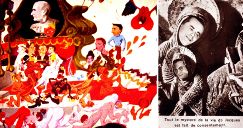 Figure 5: Mural “frescoes” at the Salpêtrière guardroom circa 1980. Bottom right: "The whole mystery of Jacques' life is made of consent".