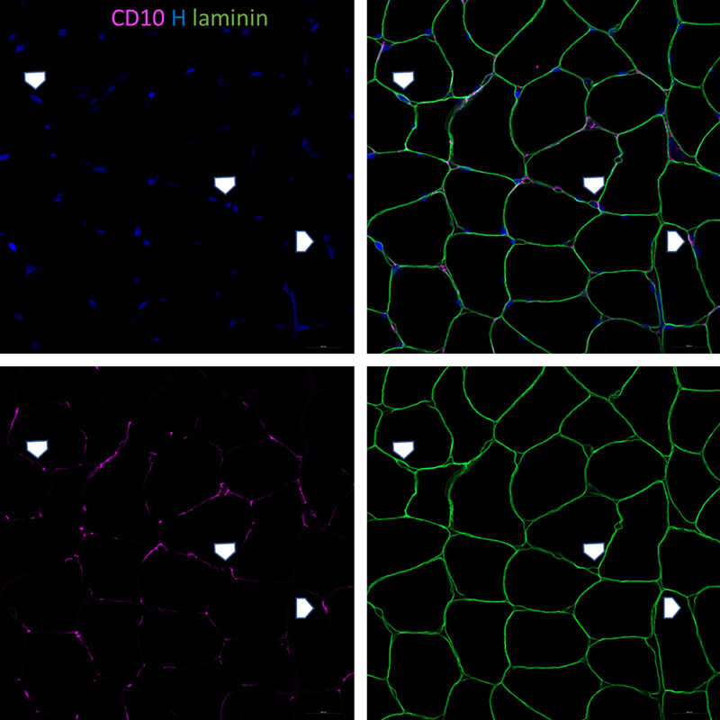 Figure 1. Resting and activated histology of CD10+ fibro-adipogenic progenitors in human skeletal muscle.