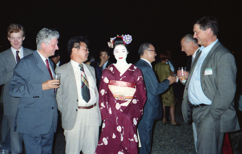 Fig. 7 From the 2nd left: Prof. Jellinger, Hori, a Kyoto Beauty, Congress President Prof. Yonezawa, Prof. Friede, and Prof. Kleihues (ICN 1980 at Kyoto)