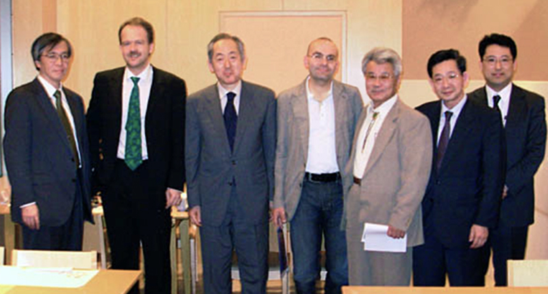 Fig. 8 Japanese NP Congress 2007; from left: H. Akiyama, M. Graeber, K. Ikeda, W. Paulus, A. Hori, K. Tsuchiya, and T. Arai I was requested to contribute to a NP-Textbook a chapter on developmental neuropathology: Paulus and Schröder (Eds.): Pathologie–Neuropathologie, Springer, 2012, former Peiffer (Ed): Neuropathologie, Springer, 1995. I described fetuses of atomic bomb victims. It was only one line in my chapter but I am proud of this crystal one line which was the extract of my study results after a 7-days and 6,000 double miles trip to Hiroshima in 2001. I visited RERF (Radiation Effects Research Foundation), formerly ABCC (Atomic Bomb Causality Commission), founded initially in 1946 by the National Academy of Science, US and managed by the General Headquarters of the US Army. This was one of my research projects on intrauterine radiation effects on fetal development, supported by DFG (Deutsche Forschungsgemeinschaft) and my friend in the Ministry of Welfare of the Japanese Government.