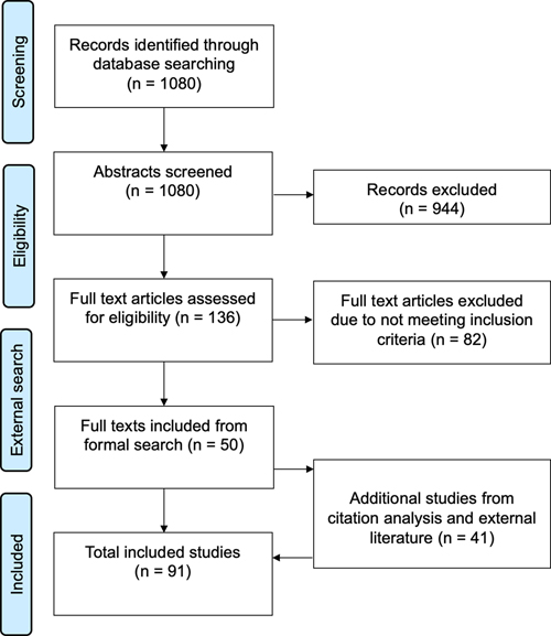 Figure 1. Study selection flow diagram. Biochemistry of long-term fluid preservation Polymer properties of formaldehyde Formaldehyde is by far the most common initial preservative used in brain banking. Molecular formaldehyde is a gas that dissolves rapidly in water. In water, it is rapidly hydrated to form methanediol, also known as methylene glycol or formaldehyde monohydrate (Figure 2). In aqueous solutions, methanediol is abundant, while unhydrated monomeric formaldehyde is almost completely absent (Boyer et al., 2013; Walker, 1944). In turn, methanediol oligomerizes or polymerizes very rapidly, making it difficult to isolate in the pure state (Schmitz et al., 2015). Specifically, methanediol reacts to form 1,3,5-trioxane, a stable cyclic trimer, or polyoxymethylene glycol, which is a polymer form with a variable number of subunits. The equilibrium of monomeric and polymeric formaldehyde hydrates in a solution is governed by factors such as the temperature and concentration of formaldehyde. At higher temperature and more dilute concentrations, methanediol is favored, thus leading to the depolymerization of polyoxymethylene glycol. Additionally, in an alkaline environment, hydroxyl end-groups of the polymer form are more rapidly degraded, leading to the progressive cleavage of formaldehyde units from the extremities of the linear molecular chains (French and Edsall, 1945).