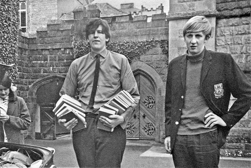 Figure 7: The authors last day in Clongowes with his lifelong pal, Larry Doyle, helping to pack the authors books. Medical School in the Royal College of Surgeons in Ireland The five years in Clongowes seemed to pass quickly and culminated in my being accepted into The Royal College of Surgeons Medical School on Dublin’s St. Stephen’s Green (Figs. 8, 9). I had an idea of what lay ahead as my father and his brother had both graduated from the same institution, but nothing could have prepared me for the anatomy room smells or the appalling odour of pickled rats and dogfish in Biology class. The pre-clinical years were tough. No sign of a patient, just tedious anatomy lectures and dissections with complex biochemistry formulae thrown in. Were it not for the joys of physiology, I think I would have given up. It was not that the teachers were good or bad, but I just could not warm to learning the anatomical details of the greater and lesser sacs. Physiology was dynamic – there were functions and processes to be learned – it was all so logical. An excellent physiology teacher, Brian Mayne who was also an outstanding physician used to lecture on a Friday afternoon. Without any slides, just an occasional chalked diagram, he effortlessly guided us through the complexities of synaptic activity and axonal conductivity. The fact that he spent almost 3 years in a Japanese Prisoner of War camp added poignancy to his lectures on neuropathy and heart failure. Years later, Brian Mayne’s son Philip and I were contemporaries at London’s Westminster Hospital and later back in Dublin. We often wondered if our dad’s paths had crossed in Singapore as the emaciated prisoners were freed from the appalling Changi prison, where Brian had been incarcerated. At last, with pathology lectures I began to understand illness more clearly and here I came across my first celebrity teacher who was also a neuropathologist.