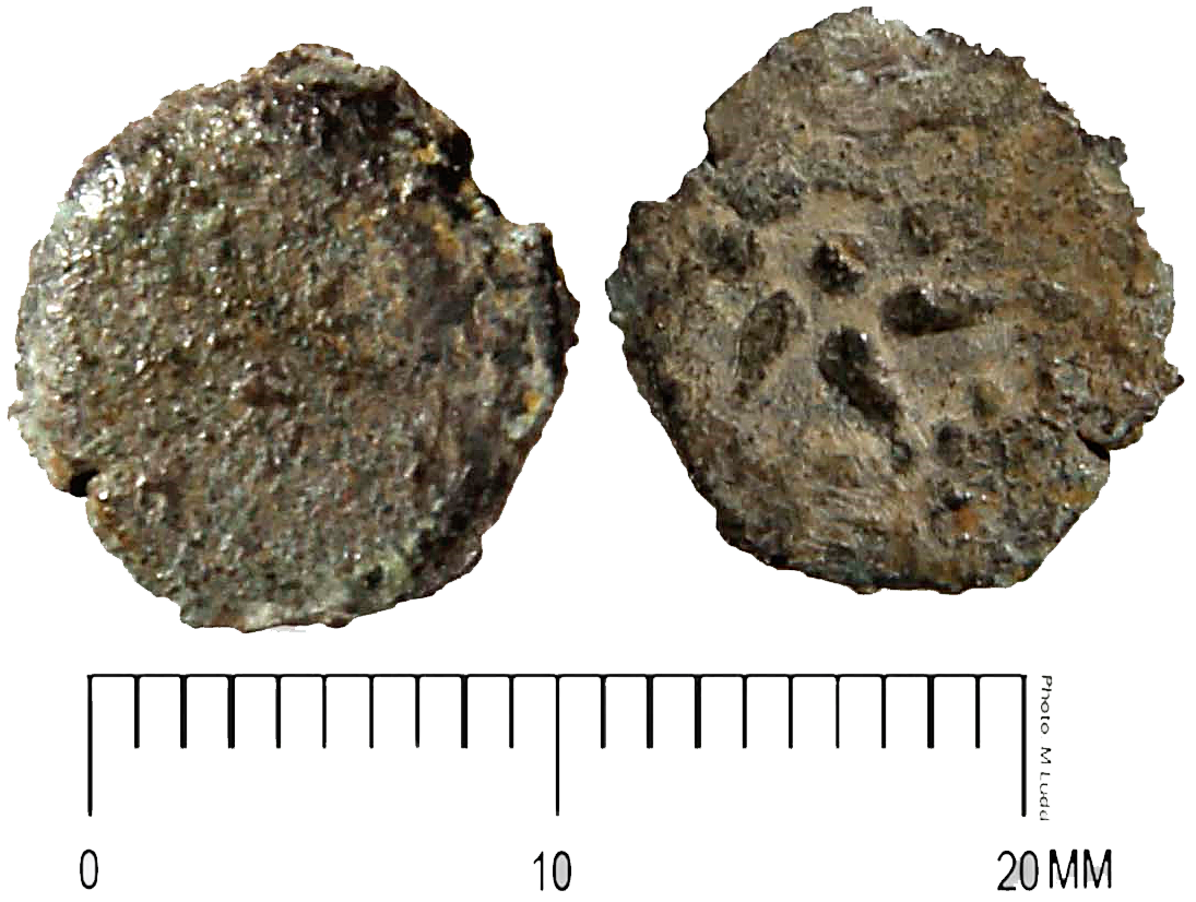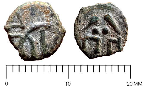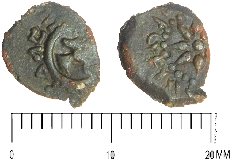 Two new variants in the depiction of the star for the TJC group L coins were recently discovered. The first variant depicts a star with five rays; one specimen of this type was discovered at Khirbet el-Maqatir[2] (0.61g, 5x7mm; fig. 1)[3] and a second is from a private collection (0.57g, 10x12.5mm; fig. 2)[4].