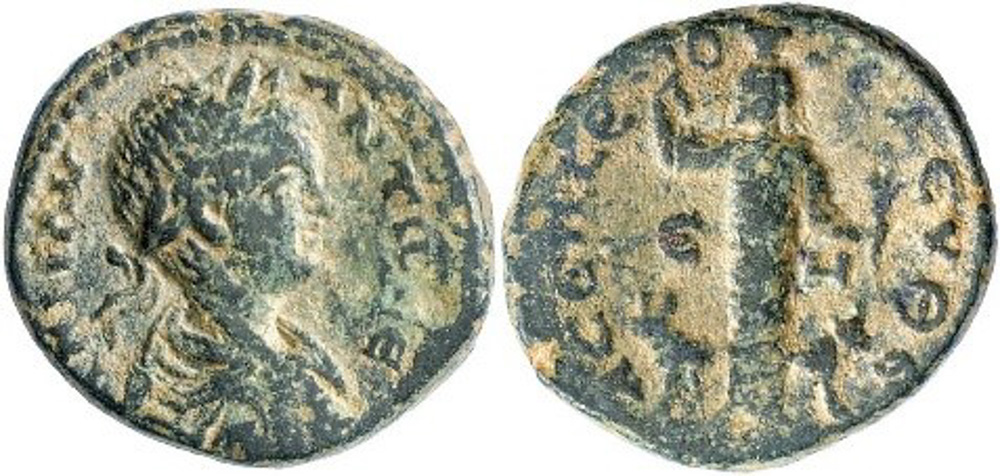 both cities was struck in the name of young Caracalla (No. 2);