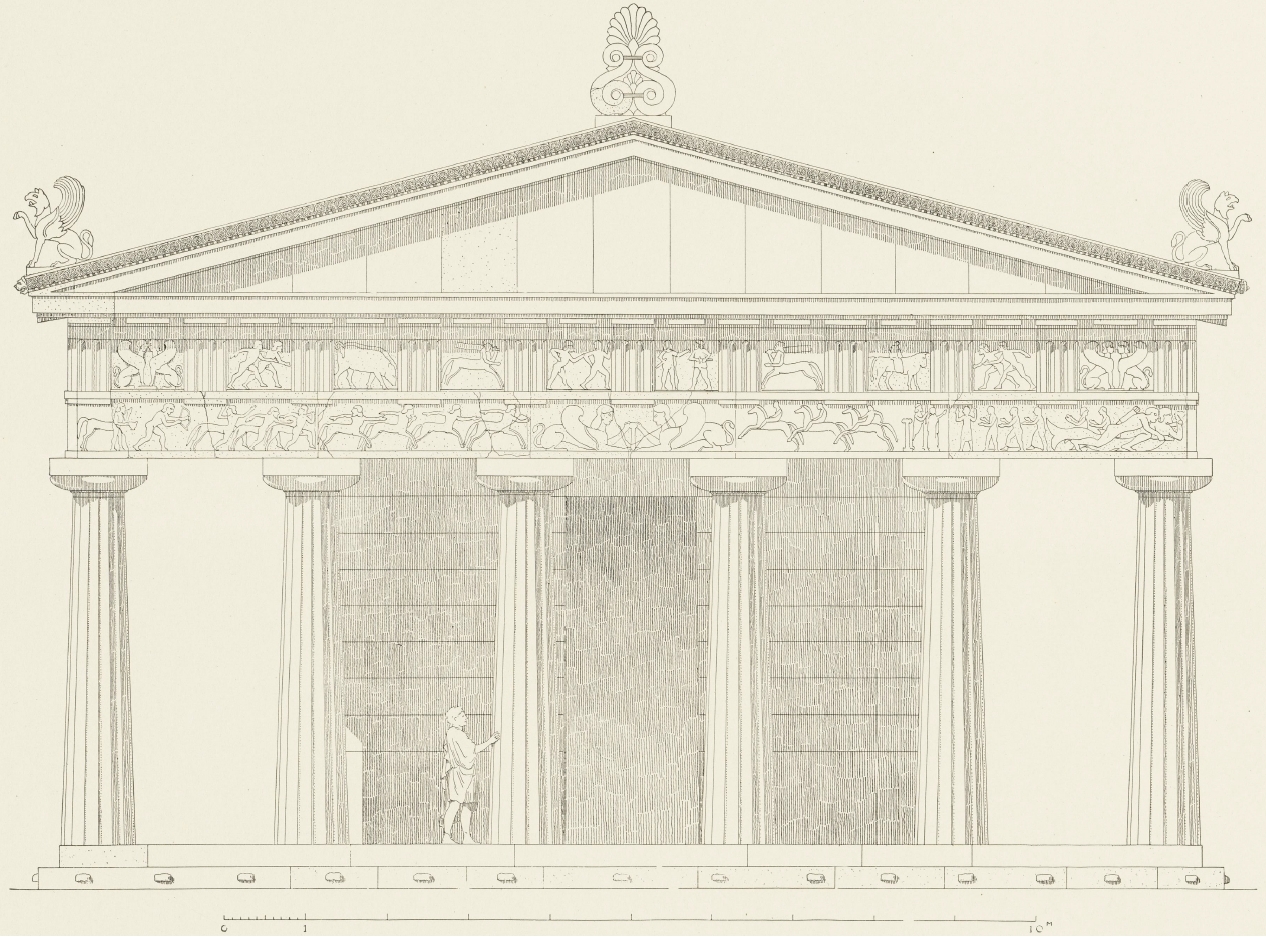 eines Akroters den Beleg für einen Greifen. Die Sphingen