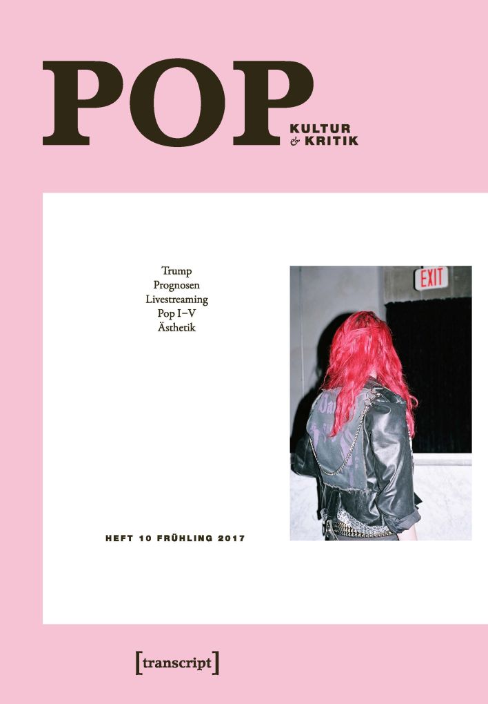 Nr. 10 (2017)Die vollständig illustrierte Paperback-Version der Zeitschrift »Pop. Kultur und Kritik« kann man über den Buchhandel oder auch direkt über den Verlag beziehen. Das Einzelheft kostet 16,80 Euro. Das Jahresabonnement (zwei Hefte: März- und Septemberausgabe) kostet in Deutschland 30 Euro, international 40 Euro (Bestellformular hier).