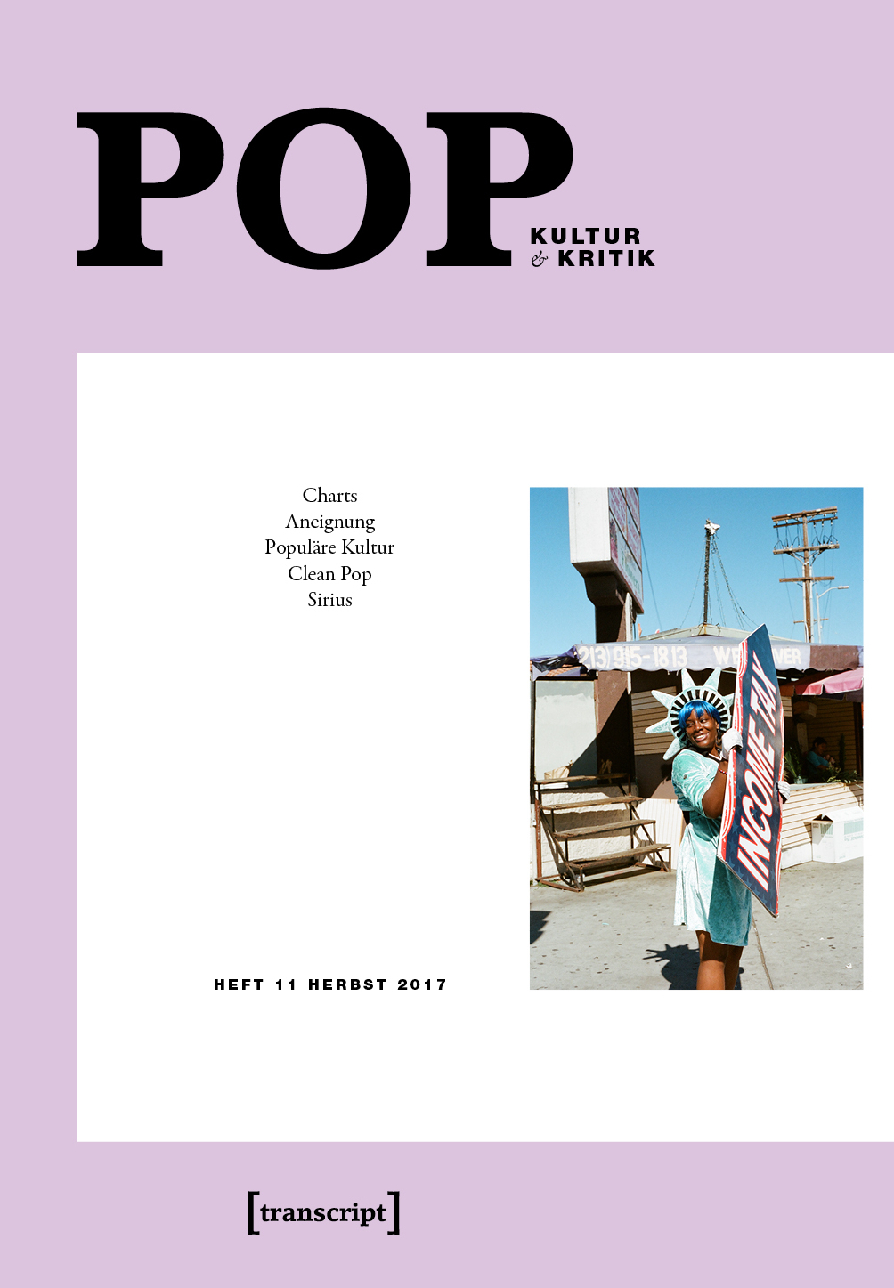 Nr. 11 (2017)Die vollständig illustrierte Paperback-Version der Zeitschrift »Pop. Kultur und Kritik« kann man über den Buchhandel oder auch direkt über den Verlag beziehen. Das Einzelheft kostet 16,80 Euro. Das Jahresabonnement (zwei Hefte: März- und Septemberausgabe) kostet in Deutschland 30 Euro, international 40 Euro (Bestellformular hier).