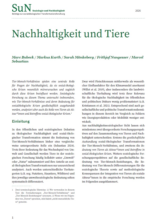 Nachhaltigkeit und Tiere (Glossarbeitrag Soziologie der Nachhaltigkeit)