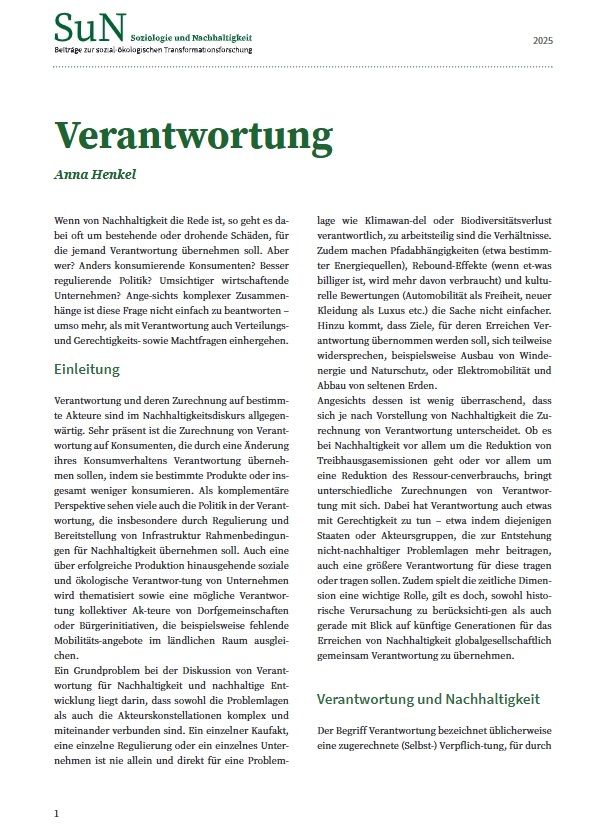Verantwortung (Glossarbeitrag Soziologie der Nachhaltigkeit)