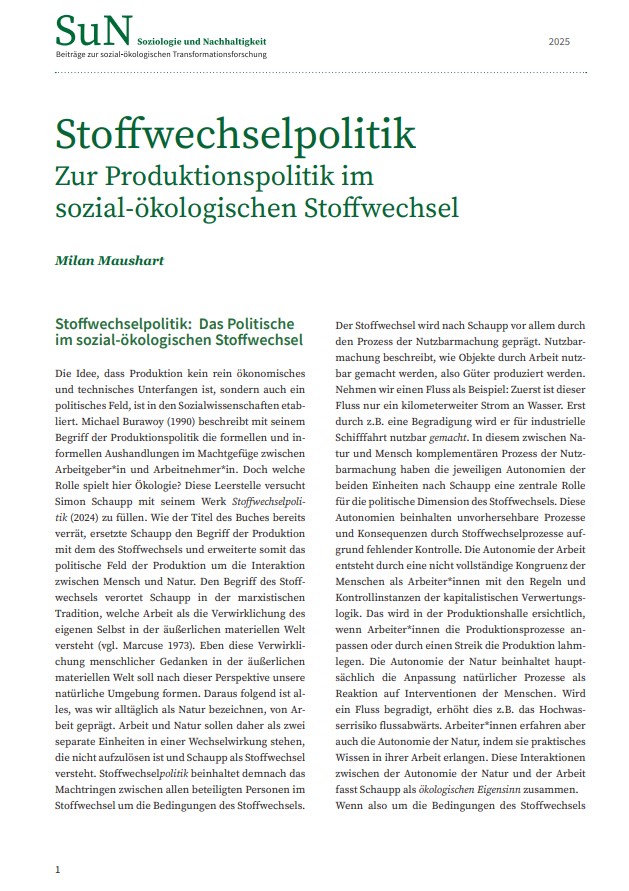 Stoffwechselpolitik: Zur Produktionspolitik im sozial-ökologischen Stoffwechsel