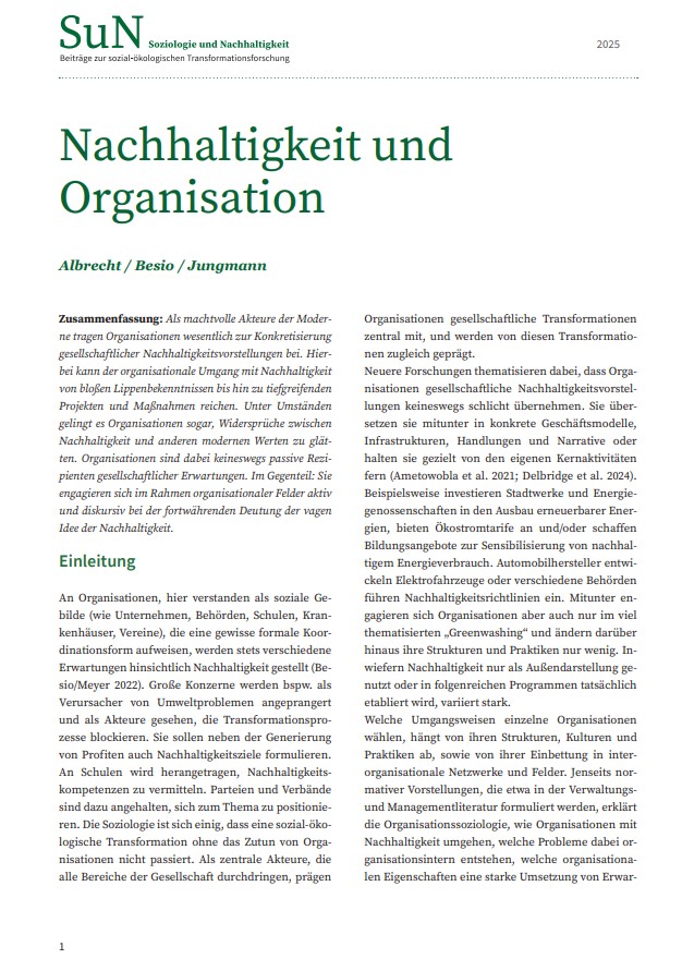 Nachhaltigkeit und Organisation (Glossarbeitrag Soziologie der Nachhaltigkeit)