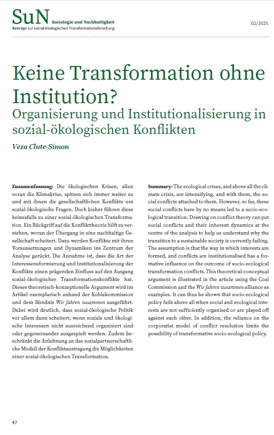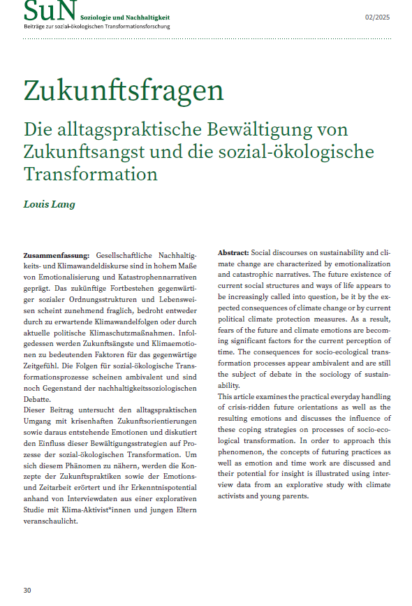 Die Ausgabe "Zeit der Transformation, Zeit des Stillstands?" widmet sich zeitdiganostischen Beschäftigungen mit der sozial-ökologischen Dimension.