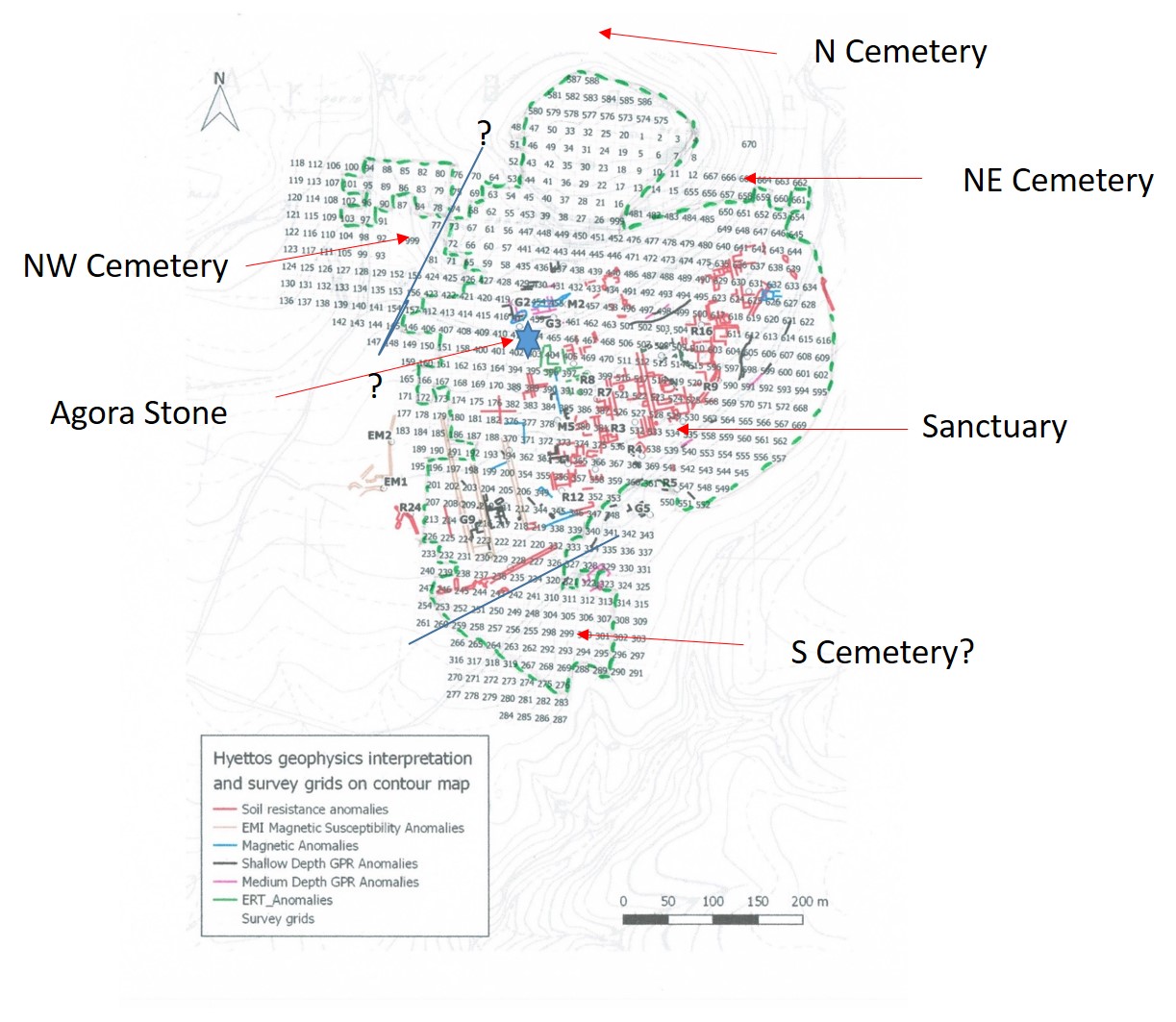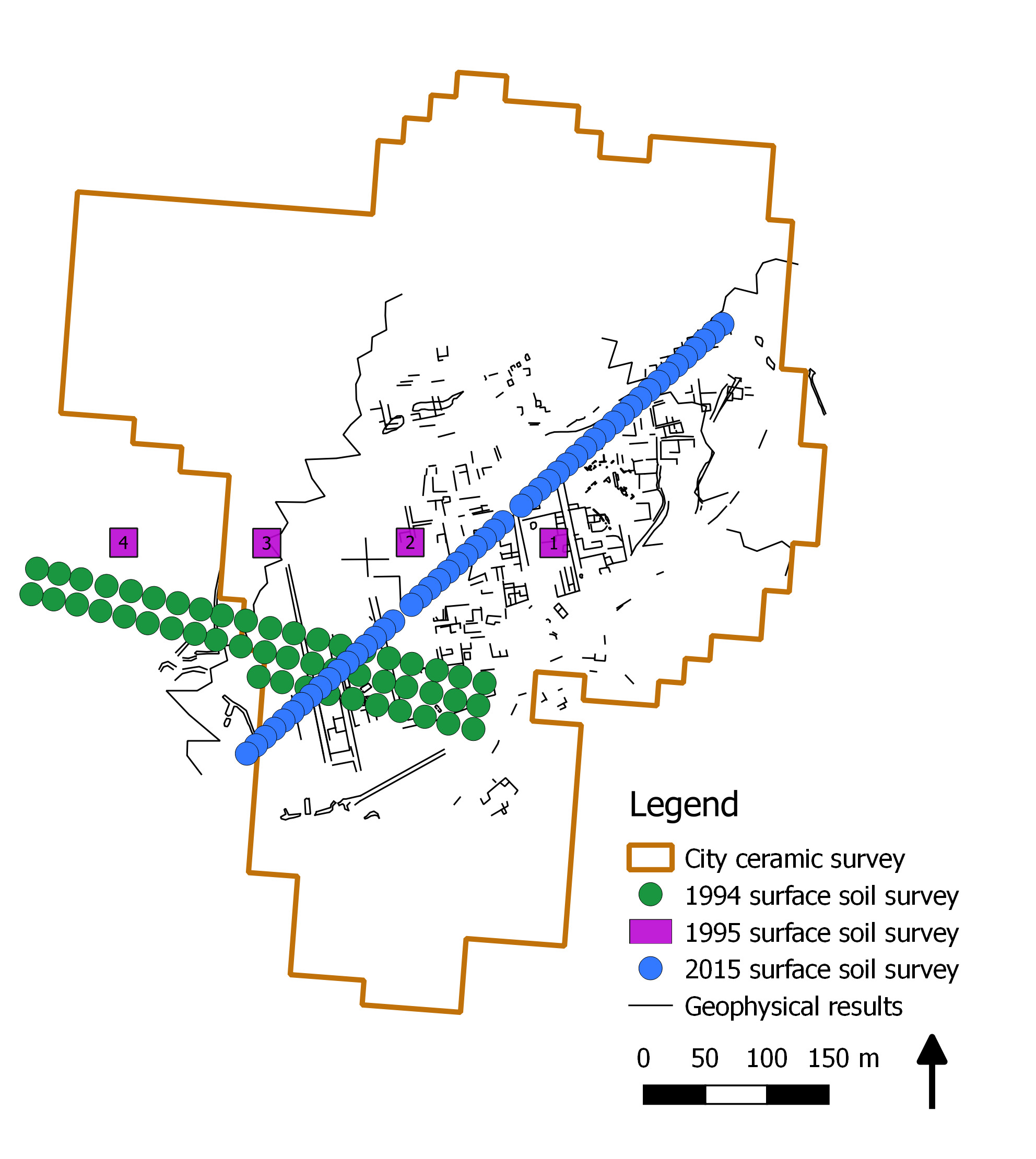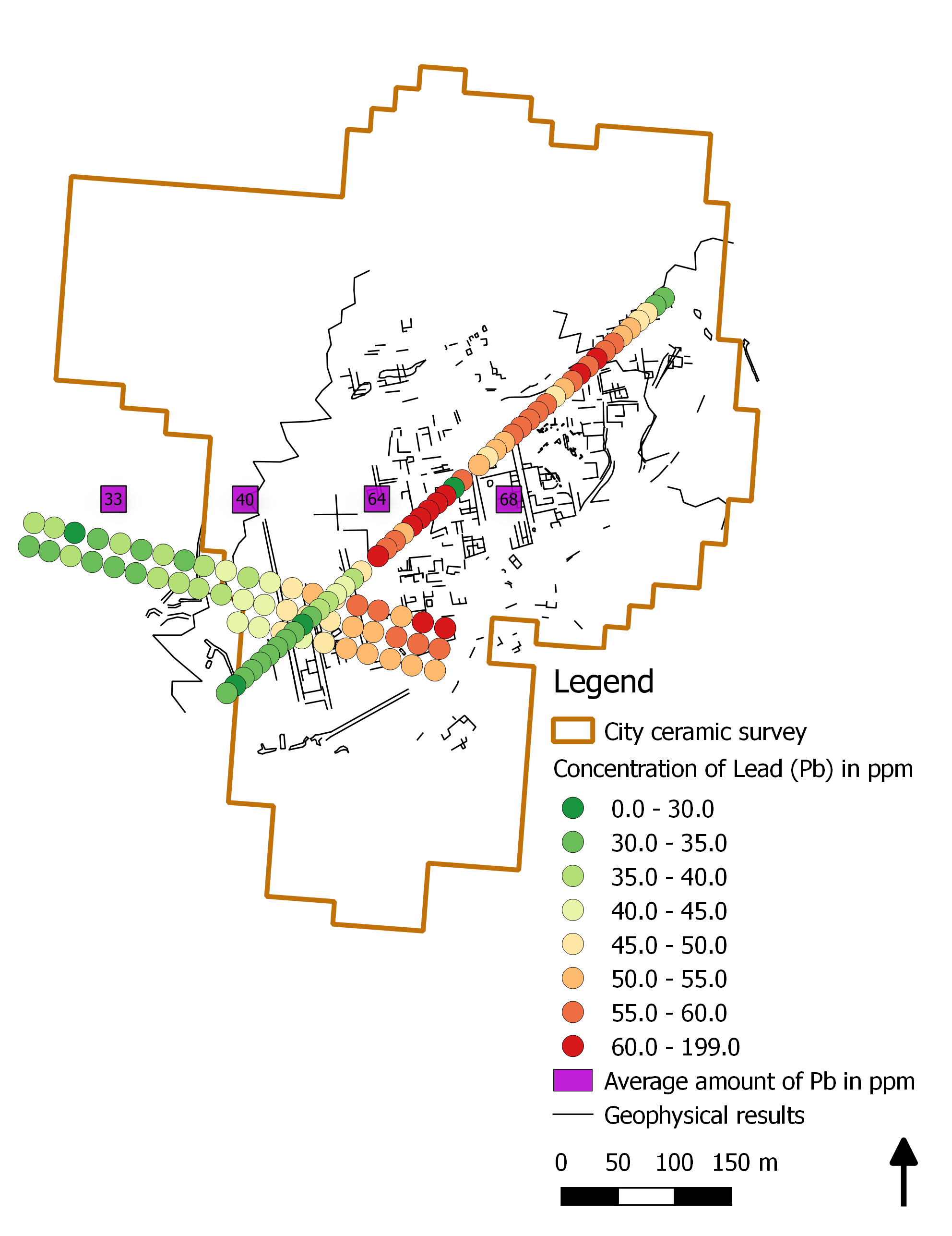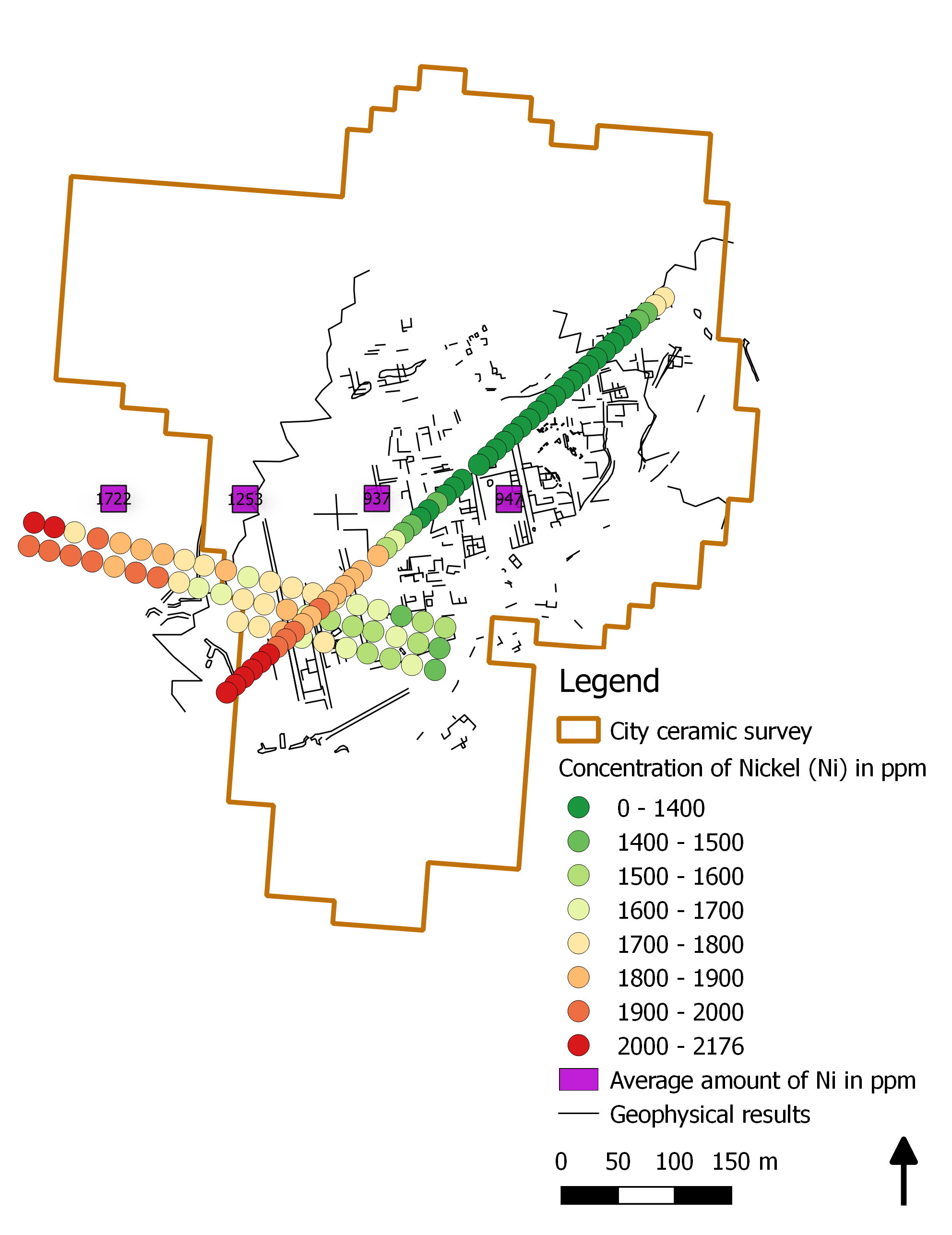 [FIGURE ONE] Between 2019 and 2020 we completed the last fieldwork at the city and countryside of Hyettos in North Boeotia, which will form the third final monograph of our regional project. [FIGURE TWO] The city is the elevated hill in the lower right of the air photo, adjacent to its fertile plain. [FIGURE THREE] Our surface ceramic survey and geophysical survey by Apostolos Sarris has revealed the Greco-Roman city plan. [FIGURE FOUR] Alongside these approaches we deployed soil geochemistry: here we see the various soil sampling locations within the city area. [FIGURE FIVE] Trace elements linked to intense human activity, such as copper and lead (the former shown here) are very enhanced across the city core in its centre and east (colours orange to red), whereas elements tied to the local geology [FIGURE SIX] such as nickel are very weak (green colours) in these areas and high in the extramural west but also intriguingly in the outer western city suburb. [FIGURE SEVEN] The explanation reflects the long-term occupation history of the city: in Greek times it reached its widest extent (ceramic plot on the right), then by Roman times the town contracted and abandoned its western suburbs (larger image on the left). Trace elements mirroring intense human activity are thus strongest in the east and centre and weaker in the west, allowing the bedrock influence in soil to increase there. This geochemical research has recently been published by myself and Patrick Degryse of Leuven University in two Open Access articles in the Journal of Archaeological Science for 2022.